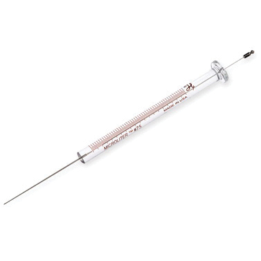 Microliter Syringe, 5 µl, 43.4 mm L, 0.25 ID x 0.64 mm OD, 0.343 ID x 6.6 mm OD Barrel, 23s ga Gauge, 700 Series, 75 Model, AS Point Style, Cemented Needle Termination, SST, Borosilicate Glass Fluid Path, Stainless Steel Plunger