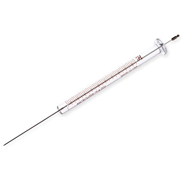 Microliter Syringe, 10 µl, 43.4 mm L, 0.34 ID x 0.64 mm OD, 0.485 ID x 6.6 mm OD Barrel, 23s ga Gauge, 700 Series, 701 Model, AS Point Style, Cemented Needle Termination, SST, Borosilicate Glass Fluid Path, Stainless Steel Plunger