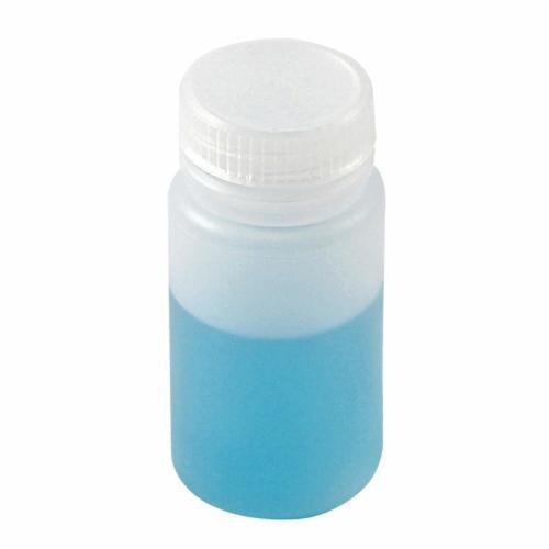 Laboratory Bottle, 60 ml, 82 mm H, 26 ID Neck x 40 mm OD Bottle, Translucent, HDPE, 33 mm Closure Size, Round, Wide Mouth, Leakproof, Rigid, with White Polypropylene Screw Cap