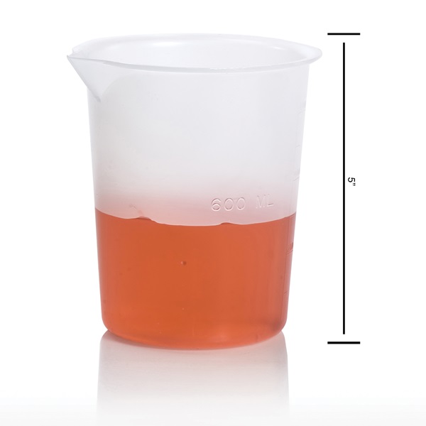 Griffin Beaker, 600 ml, 127 mm H, 109 Top x 83.8 mm Bottom OD, Translucent, Polypropylene, 100 ml Graduation Intervals, Low Form, Graduated