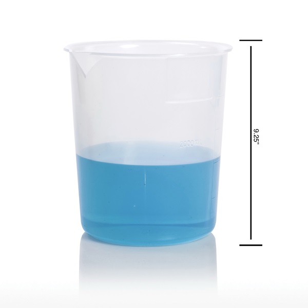 Griffin Beaker, 4000 ml, 228.6 mm H, 213.4 Top x 172.7 mm Bottom OD, Translucent, Polypropylene, 1000 ml Graduation Intervals, Low Form, Graduated
