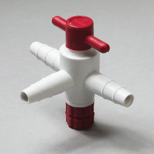 With a removable, leak-proof plug made of chemical-resistant, non-stick PTFE, these 2- and 3-way polypropylene plastic stopcocks have barbed tubulations that accept 6.4 mm to 9.5 mm (0.25 to 0.37") ID tubing.