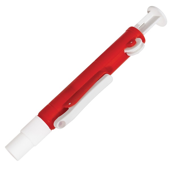 Pipettor, Up to 25 ml Pipette, Red, Polypropylene, Rapid Release Valve for Quick Dispensing, Rotate the Thumb Wheel for Gradual Dispensing, Glass or Plastic Pipettes are Easily Inserted into a Collar for a Secure Hold