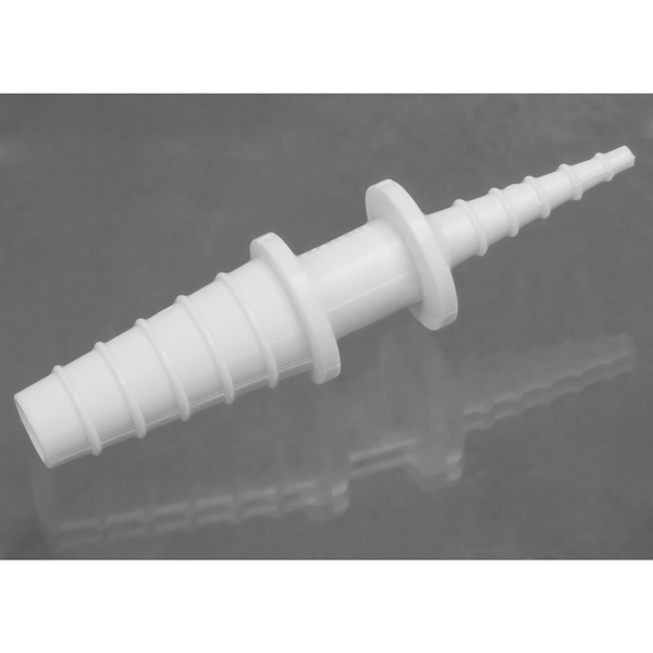Stepped Tubing Connector, 85.7 L x 20.6 mm W, Polypropylene, Fits to 4.7/12.7 mm Tubing ID, Autoclavable, Chemical-resistant, Food-grade, For Use With a Wide Range of Liquids or Gases