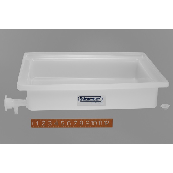 Tray, 45.7 L x 55.9 W x 10.2 cm H, LDPE, General Purpose, Heavy Walled Design, With Faucet, Rugged, Long-Lasting and Corrosion Resistant, Withstand Temperatures upto 77°C