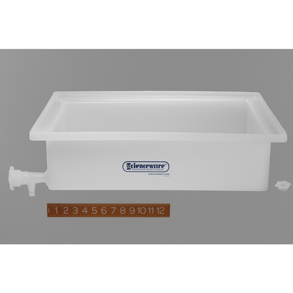 Tray, 44.5 L x 59.7 W x 15.2 cm H, LDPE, General Purpose, Heavy Walled Design, With Faucet, Rugged, Long-Lasting and Corrosion Resistant, Withstand Temperatures upto 77°C
