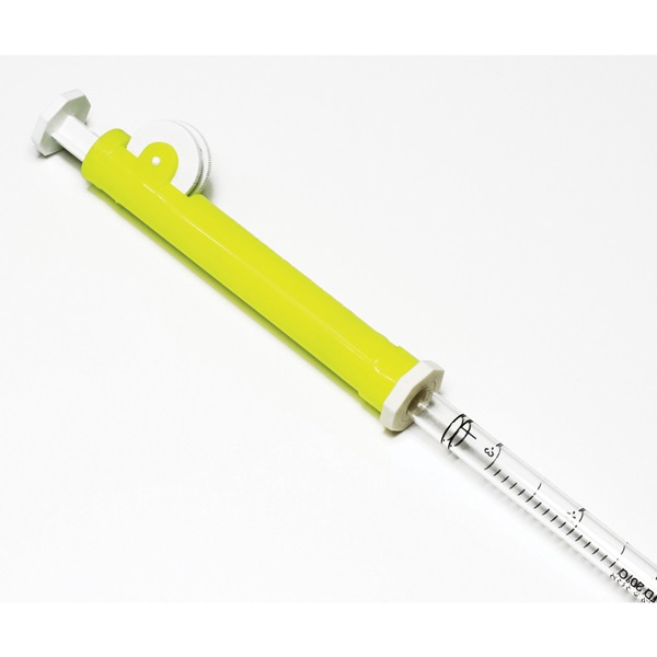 Pipettor, Up to 0.2 ml Pipette, Yellow, Polypropylene, Autoclavable, Resistant to Acids and Alkalis, Pipettes Fit Smoothly into its Flexible Tapered Chuck, Thumbwheel on Side is Rotated for Precision Aspirating or Dispensing