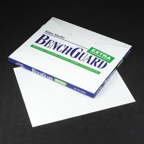 BenchGuard™ and BenchGuard™ Extra have highly absorbent upper surfaces that contain spills and a tough polycoated base to protect your work surface. Standard BenchGuard™ absorbs up to 440 ml per square meter. For your most demanding applications choose BenchGuard™ Extra - it absorbs up to 800 ml per square meter. BenchGuard™ and BenchGuard™ Extra are available in either pre-cut sheets (60 x 49 cm) or a roll dispenser (50 M x 49 cm) that has a built in cutting edge for easy cutting of any size sheet.