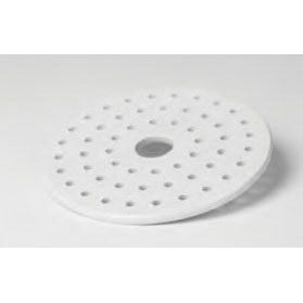 Desiccator Plate, 190 mm dia, 23 mm Central Hole dia, 1 mm Hole dia, Porcelain, 1150°C Maximum Temperature Limit, With Numerous Small Perforations, Large Hole in Center, Glazed on Top Surface
