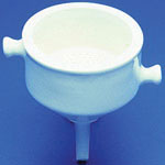 Funnel, 90 ml, 111 mm H, Porcelain, 55 mm dia Filter Paper, Buchner Type, With Inlet and Outlet Tubulatures, For Circulation of Water, Steam, etc, With Double Wall, Glazed Inside and Out Except for Rim