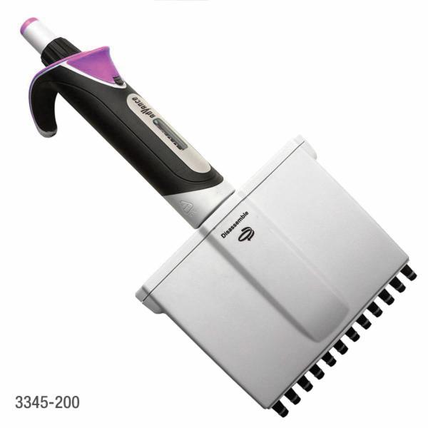 Pipette, 20 to 200 µl, Lavender, 0.2 µl Increments, 12-Channel, Adjustable Volume, B Tip Group, Fully Autoclavable, Calibrated, Light-weight and Ergonomic Design, Tip Ejector, 360° Rotating Manifold