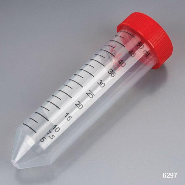Centrifuge Tube, 50 ml, Polypropylene, 20000 xg Spin Rate, Sterile, Autoclavable, Marking Spot, Printed Graduation, -80 to 121°C Temperature Range, With Attached Red Flat Top Screw Cap