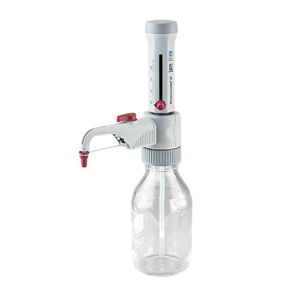 Bottletop Dispenser, 0.2 to 2 ml, Red, =±0.5% (10 µl) Accuracy, 0.05 ml Increment, =0.1% (2 µl) Imprecision (CV%), Analog Display, Adjustable, Autoclavable, Polypropylene Adapter, With Recirculation Valve