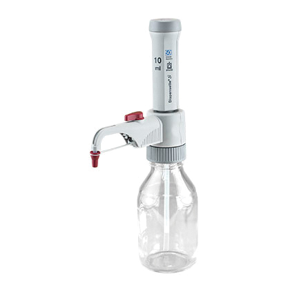 Bottletop Dispenser, 10 ml, Red, =±0.5% (50 µl) Accuracy, =0.1% (10 µl) Imprecision (CV%), Autoclavable, Fixed Volume, Polypropylene Adapter, With Recirculation Valve, Discharge Tube, Valve Mounting/Calibration Tool, Polypropylene Adapters