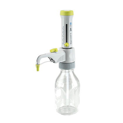 Organic Bottletop Dispenser, 0.5 to 5 ml, Yellow, =±0.5% (25 µl) Accuracy, 0.1 ml Increment, =0.1% (5 µl) Imprecision (CV%), Analog Display, Adjustable, Autoclavable, With Recirculation Valve