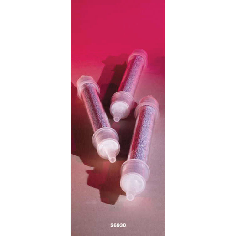 Indicating Drierite™ ® in this plastic unit dries air and gases for small scale laboratory applications. A rubber hose connection provides an immediate flow of dry gas. Indicating Drierite™ is a distinct blue color. When its drying capacity is exhausted, it turns to pink. Indicating Drierite™ gives constant visual assurance of active desiccant.