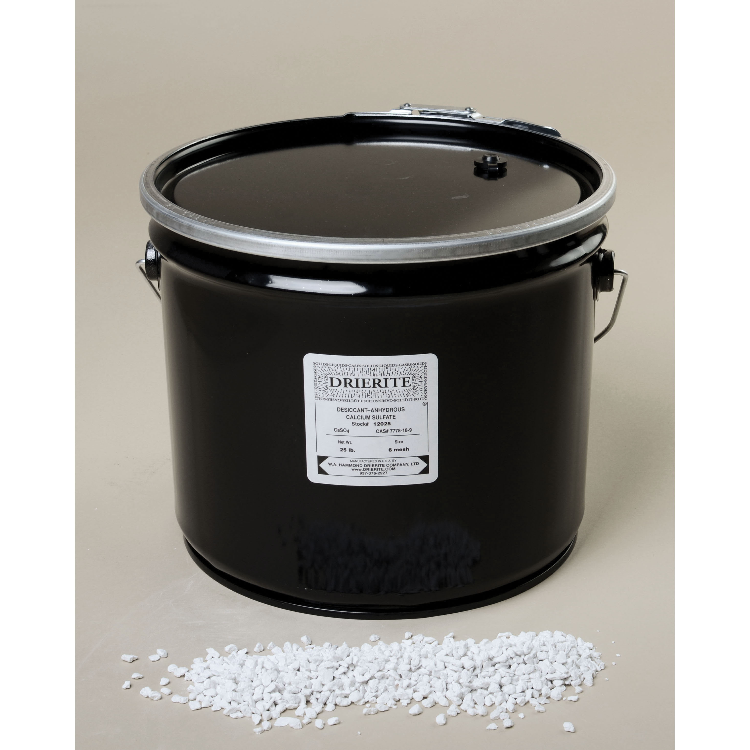 Drierite™ desiccants are made from the naturally occurring mineral, gypsum (calcium sulfate), and are available in several varieties designed to solve all types of drying problems. Drierite™ is an all purpose drying agent for the efficient and rapid drying of air, industrial gases, refrigerants, organic liquids and solids. It is used to maintain a dry atmosphere in storage spaces, vaults, commercial packages, and other enclosures; and for the protection of hygroscopic materials or materials subject to mildew, corrosion, rust, or other deterioration caused by high humidity. Regular Drierite™ is anhydrous calcium sulfate. It is of neutral pH, constant in volume, chemically inert except toward water, insoluble in organic liquids and refrigerants, non-disintegrating, non-wetting, non-toxic, non-corrosive, non-channeling, generally recognized as safe (GRAS) by the FDA, not regulated by OSHA, economical to use, and can be regenerated repeatedly for reuse.