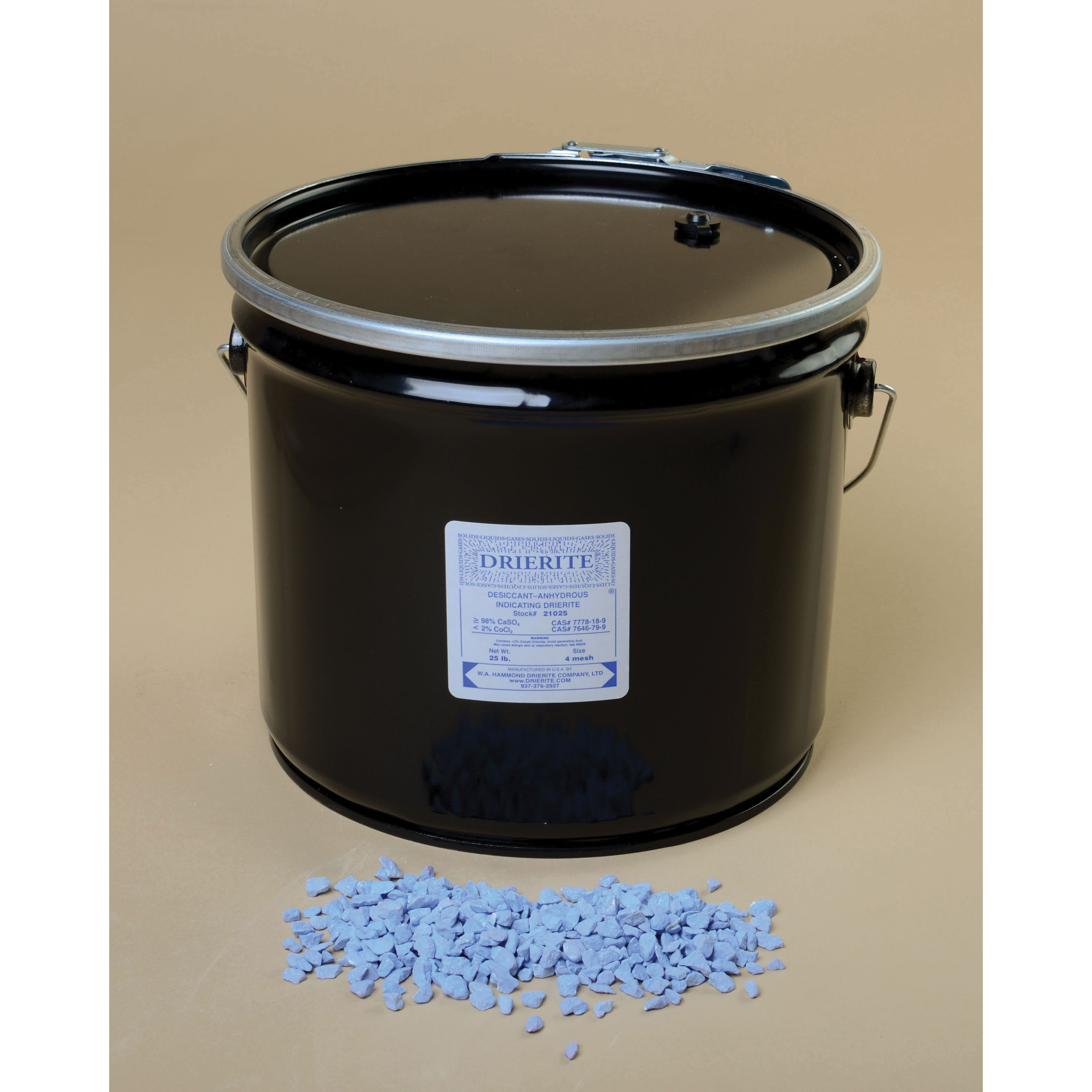 Desiccant, Indicating, 25 lb, 4 Mesh Size, Blue/Pink, Granular, Metal Can Packaging Type, Used to Maintain a Dry Atmosphere in Storage Spaces, Color Change is Pronounced and Clearly Visible