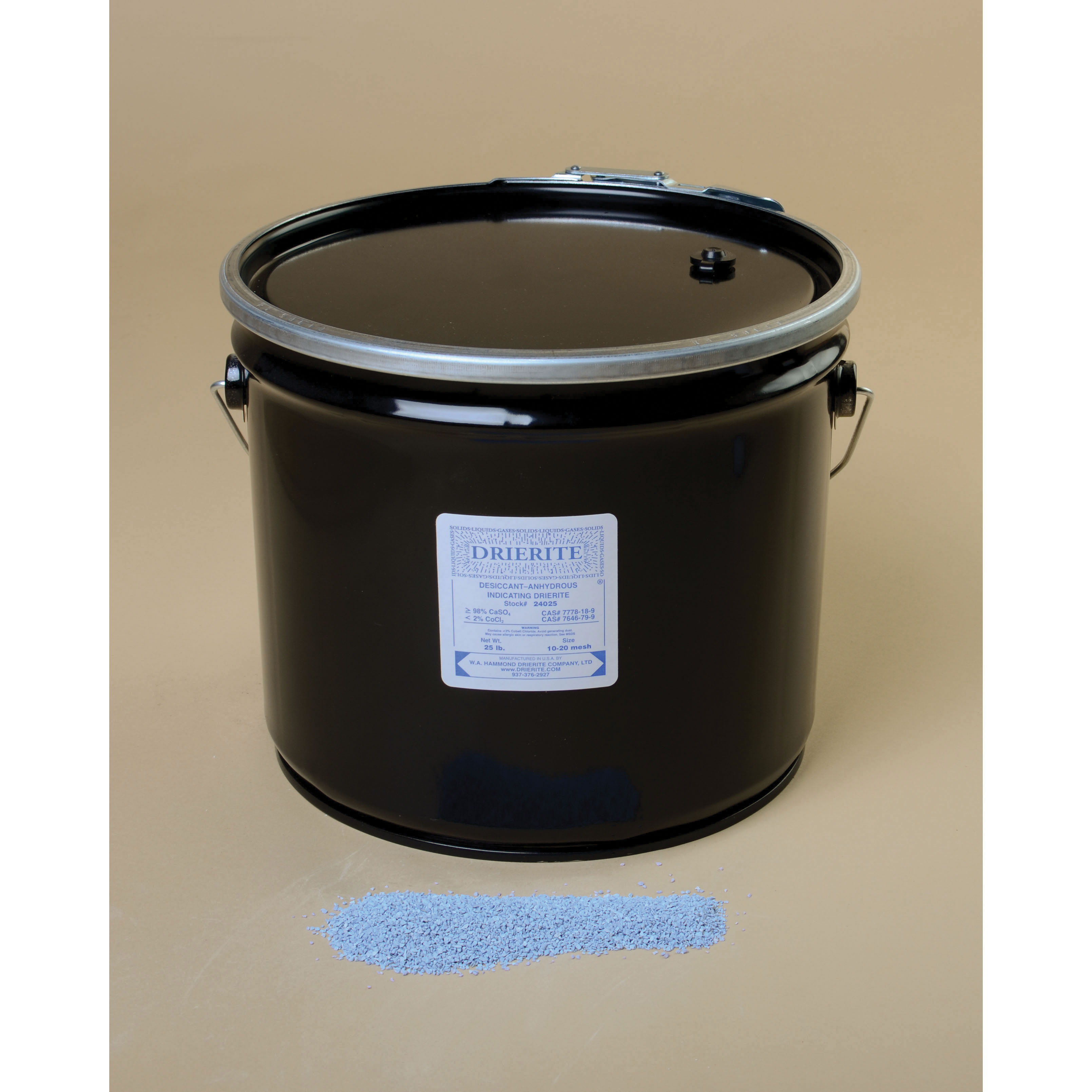 Desiccant, Indicating, 25 lb, 10 to 20 Mesh Size, Blue/Pink, Granular, Metal Can Packaging Type, Used to Maintain a Dry Atmosphere in Storage Spaces, Color Change is Pronounced and Clearly Visible