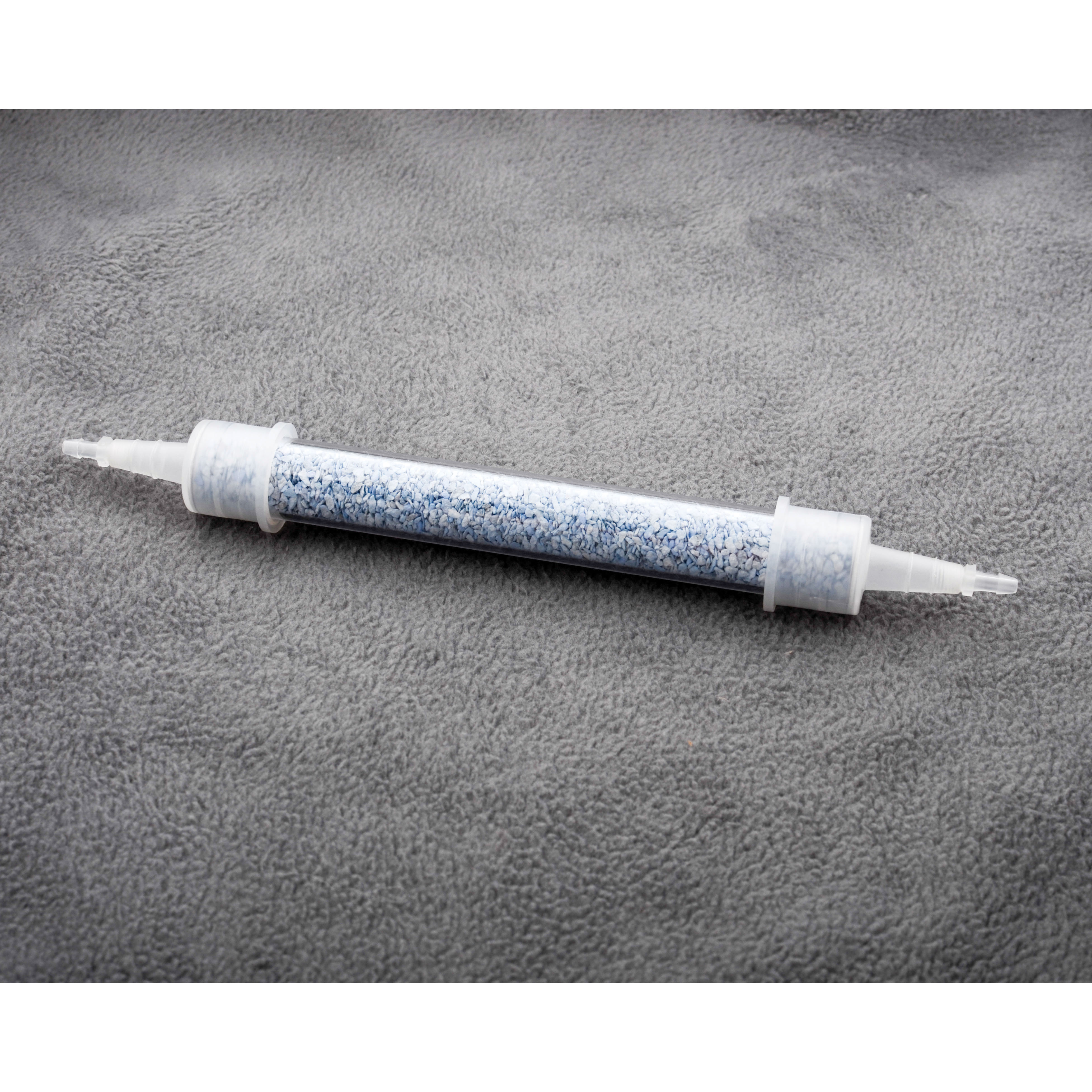 Drying Tube, 0.75 OD x 8" L, Polycarbonate, Molded Polypropylene End Cap, 300 cc/min Maximum Flow Rate, 3 g Water Capacity, With 1/8" Hose Barb, For Air and Gas Drying Unit, 1/16 to 3/8" ID Flexible Tubing Connections