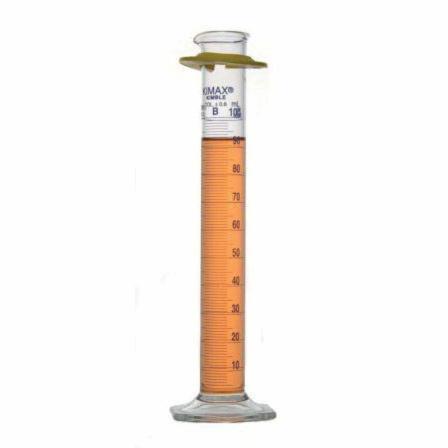 Cylinder, 100 ml, 255 mm H, Borosilicate Glass, ±0.6 ml Tolerance, 5 to 100 ml Graduation Range, 1 ml Graduation Intervals, Single Blue Metric Scale, Calibrated To Deliver, Class B, Durable, SAFE-GARD® Bumper
