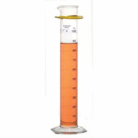 Cylinder, 1000 ml, 460 mm H, Borosilicate Glass, ±5.0 ml Tolerance, 50 to 1000 ml Graduation Range, 10 ml Graduation Intervals, Single Blue Metric Scale, Calibrated To Deliver, Class B, Durable, SAFE-GARD® Bumper