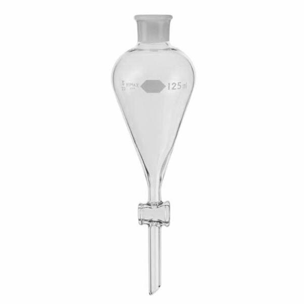 Separatory Funnel, 250 ml, 75 mm OD, 4 Stopcock, 22 Standard Taper Stopper, Pear-shape