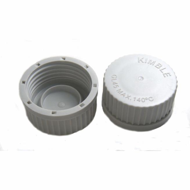 Screw Thread Cap, Gray, Polypropylene, GL 45, Color Coded, 0.2 µ PTFE Membrane, Autoclavable, Internal Molded Seal Ring, Chemical Resistance, 140°C Maximum Temperature