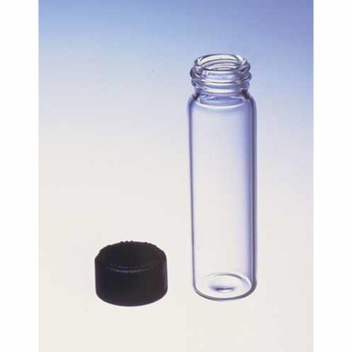 Sample Vial, 16 ml, 21 OD x 70 mm H, Clear, Borosilicate Glass, With Screw Thread, Black Phenolic Caps and Rubber Liners, 18-400 Thread Finish, Cylindrical, Closed-Top Closure