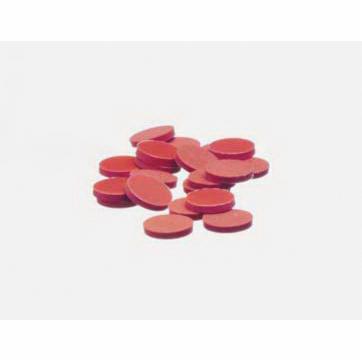 Septa, PTFE-Faced Red Rubber, 24-400 Thread Finish, 0.002" PTFE, 0.06" Red Rubber, Excellent Resealability, Highly Chemical Resistant PTFE Facing Maintains Integrity of Contents, For 18 mm Cap Size