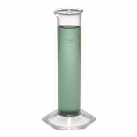 Hydrometer Cylinder, 175 ml, 200 mm H, Borosilicate Glass, 36.5 ID x 40.5 mm Nominal OD, 1.5 mm Wall Thickness, Pour Spout, Ungraduated, With a Hexagonal Base Flat Ground for Stability