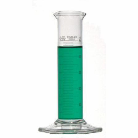Graduated Cylinder, 50 ml, 140 mm H, Borosilicate Glass, 4 to 50 ml Graduation Range, 1 ml Graduation Intervals, ±1 ml Tolerance, Calibrated "To Deliver", Class B, With Single Metric Scale, Durable White Ceramic Enamel