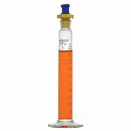 This DWK Life Sciences (Kimble) Kimax® cylinder has a closed bottom polyethylene stopper made to fit into the Standard Taper neck.