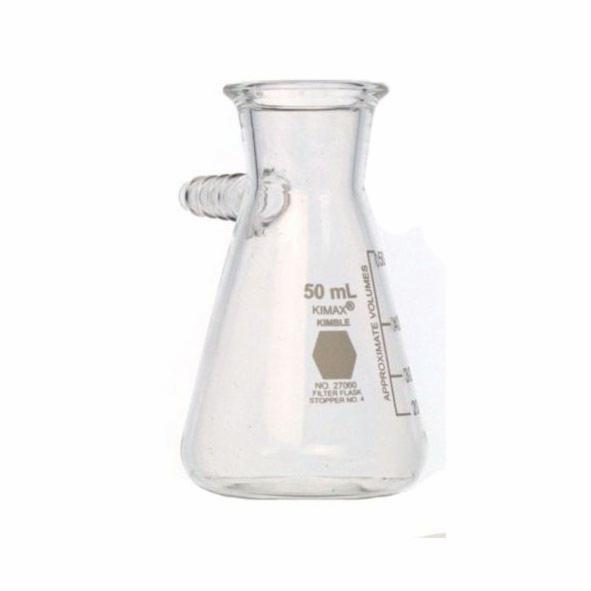 Graduated Filtering Flask, 50 ml, 81 mm H, 48 mm OD Widest, Borosilicate Glass, With Side Tubulation, Capacity Scale, All Sizes have Side Hose Connection Designed to Accept 0.31" ID Flexible Tubing