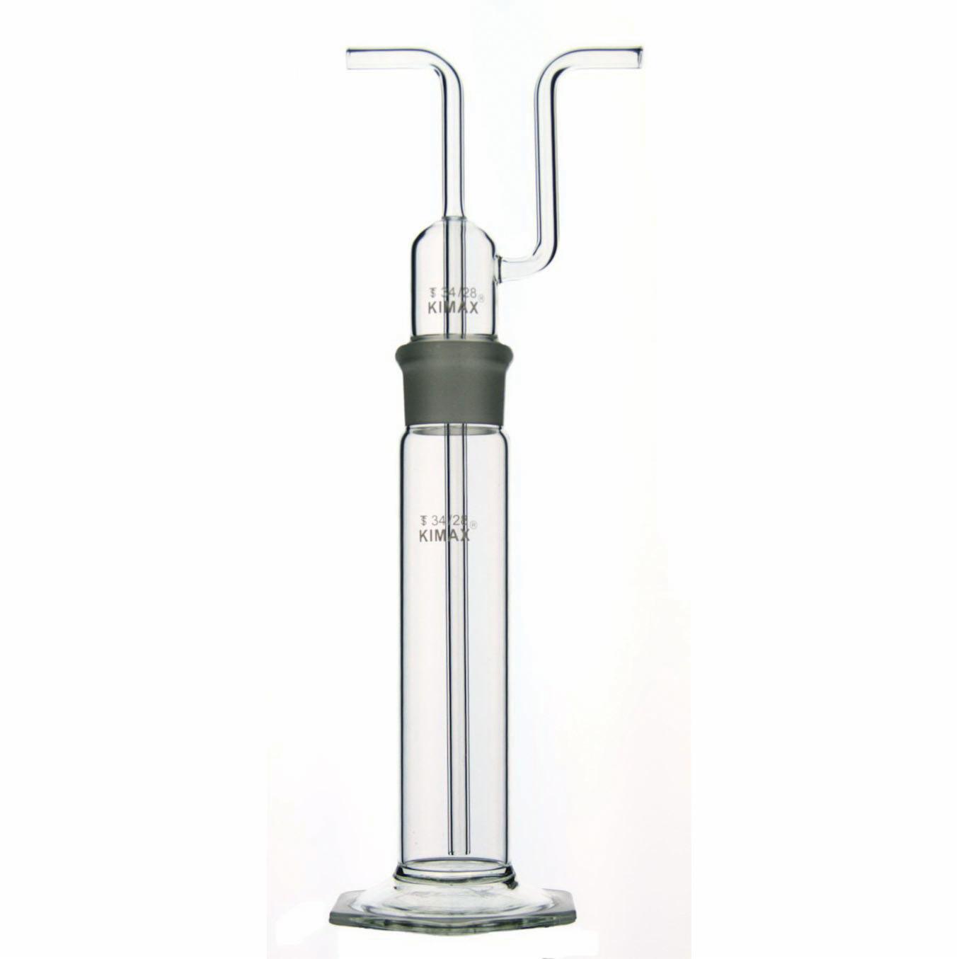 Gas Washing Bottle, 500 ml, 400 mm H, Borosilicate Glass, 0.25" ID Fits Hose, 34/28 Standard Taper Stopper, Medium Length Joint, Tall Form
