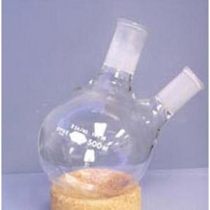 Distilling Round Bottom Flask, 250 ml, 83 mm OD Body, Borosilicate Glass, 24/40 Center, 24/40 Side Standard Taper Joint, Angled Two Neck, With Standard Taper Outer Joints