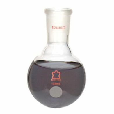 Round Bottom Flask, 125 ml, 65 mm OD Body, Borosilicate Glass, 24/40 Standard Taper Joint, Single Standard Taper Neck, Heavy Wall
