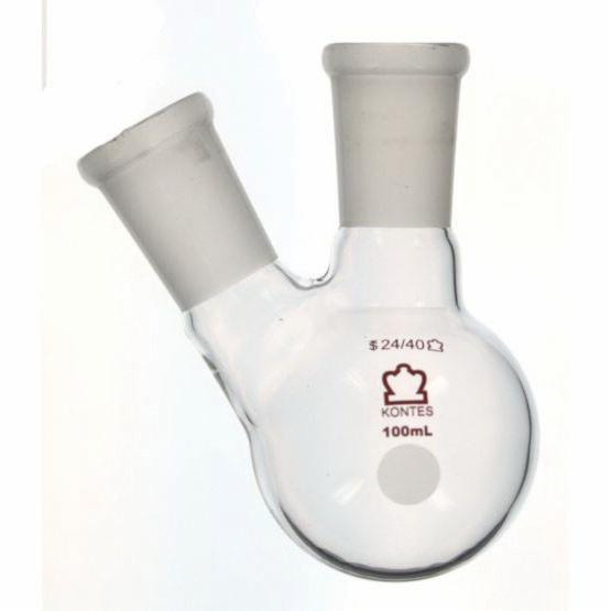 Distilling Round Bottom Flask, 3000 ml, 185 mm OD Body, Borosilicate Glass, 24/40 Center, 24/40 Side Standard Taper Joint, Angled Two Neck, With Standard Taper Outer Joints