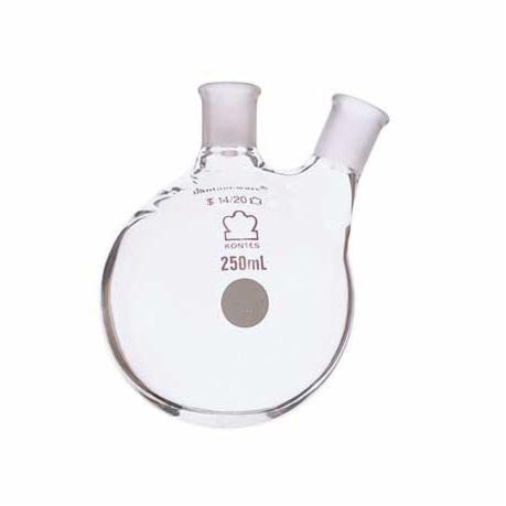 Distilling Round Bottom Flask, 5000 ml, 221 mm OD Body, Borosilicate Glass, 45/50 Center, 24/40 Side Standard Taper Joint, Angled Two Neck, With Standard Taper Outer Joints