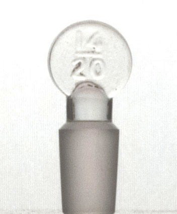 Stopper, Medium Length, Borosilicate Glass, 14/10 Standard Taper Joints, Solid Pennyhead Style, Used for Laboratory Glassware Such as Flasks, Mixing Cylinders and Separatory Funnels