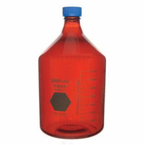 Media Bottle, 10000 ml, 227 OD x 410 mm H, Clear, Borosilicate Glass, GL 45, With Cap, 500 ml Graduation Interval, 2000 to 8000 ml Graduation Range, Autoclavable, Chemically Resistant, Graduations and Marking Spot