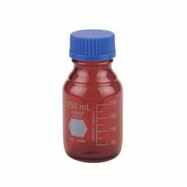 Media Bottle, 250 ml, 70 OD x 138 mm H, Clear, Borosilicate Glass, GL 45, With Cap, 25 ml Graduation Interval, 50 to 200 ml Graduation Range, Autoclavable, Chemically Resistant, Graduations and Marking Spot
