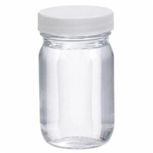 Bottle, 125 ml, 52 dia x 86 mm H, Clear, Soda-Lime Glass, Wide Mouth, Standard, Largest Bottles Available, Ideal for General, Small To Large Volume Storage, Tamper Evident Seal and Hazardous Communication Label Included with Each Case of Bottles