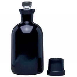 BOD Bottle, 30 ml, 73 dia x 167 mm H, Black, Borosilicate Glass, Glass Robotic Stopper, For Light Sensitive Samples