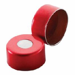 Lined Seal, Red, 11 mm, Aluminum, PTFE/Natural Silicone Liner, For Chromatography and other Instrumentation Applications, Open Top Seal, For Use With 12 x 32 mm Crimp Top Vials