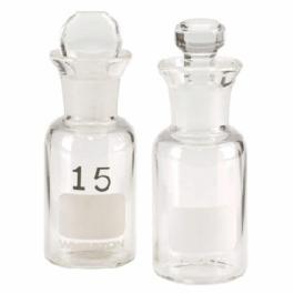 BOD Bottle, 60 ml, 43 dia x 115 mm H, Clear, Borosilicate Glass, Glass Pennyhead Stopper, Specials Number Sequence, Flared Mouth, Ideal for Incubating Diluted Samples of Sewage, Sewage Effluents, Polluted Waters and Industrial Wastes