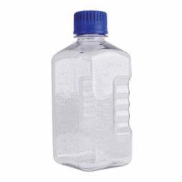 DWK Life Sciences (Wheaton) PETG square/octagonal media bottles are made of eastman tritan eastar copolyester PETG which is the resin of choice for single use labware and medical devices. This resin meets ISO 10993 and/or USP Class VI biocompatibility requirements and is Food Contact Status compliant. The PETG is an amorphous material that displays performance properties including clarity and toughness as well as excellent gas barrier and chemical inertness. The products can be safely sterilized with gamma irradiation without property loss or color shift. DWK Life Sciences (Wheaton) PETG square/octagonal media bottles are ideal for the storage of media, laboratory reagents and biological buffers. Graduation markings are molded in for reference filling. DWK Life Sciences (Wheaton) PETG square/octagonal bottles are provided gamma irradiated sterilized to SAL 10-6 with blue caps attached. Each case is clean room packaged for sterile production with multi-barrier elastomer packaging. These bottles have a standard cap.