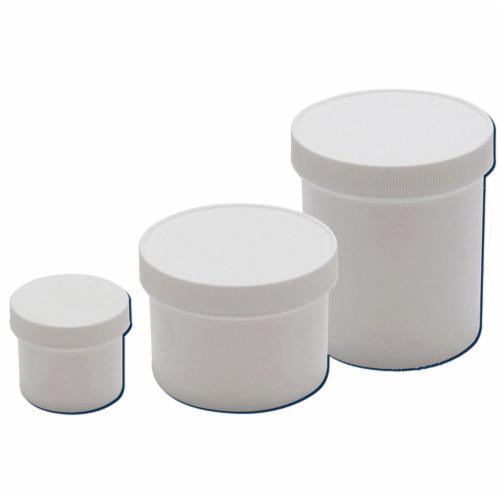 Container, 500 ml, 84 dia x 100 mm H, 89 mm Cap Size, White Opaque, Polypropylene, Wide Mouth, Straight-side Style, with Polypropylene Screw Closures, For Laboratory and Industrial Uses