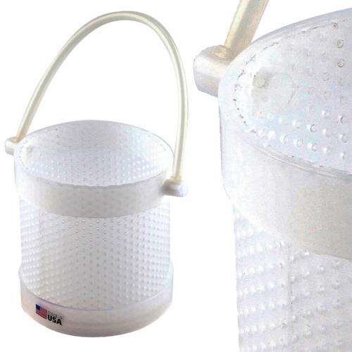 Dipping Basket, 6 dia x 6" H, 0.125" Thick Wall, White, Polypropylene, Round, Perforated Bottom, with Swinging Handle, Withstands 180°F on Continuous Basis, Withstands 200°F For Shorter Periods