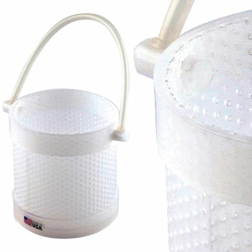 Dipping Basket, 8 dia x 8" H, 0.125" Thick Wall, White, Polypropylene, Round, Perforated Bottom, with Swinging Handle, Withstands 180°F on Continuous Basis, Withstands 200°F For Shorter Periods